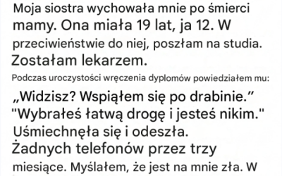 Myślałam, że zbudowałam swój sukces sama, aż do dnia, w którym szokujące odkrycie ujawniło ciche poświęcenie mojej siostry... i uświadomiło…