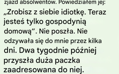 Nazwałem moją żonę „zwykłą gospodynią domową” i zabroniłem jej jechać na spotkanie absolwentów – wtedy nadeszła paczka, która pozostawiła mnie bez słowa