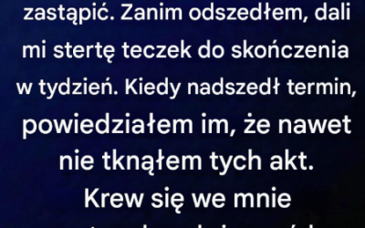 Pięć lat lojalności Przez pięć lat spełniałem w tym biurze wszystkie ich prośby. Wczesne poranki. Późne noce. Rozwiązywanie problemów, którymi…