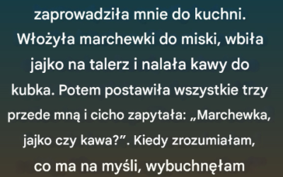 Kiedy powiedziałam babci, że mój mąż mnie zdradza, ona po prostu się uśmiechnęła i zapytała: „Marchewka, jajko czy kawa?”