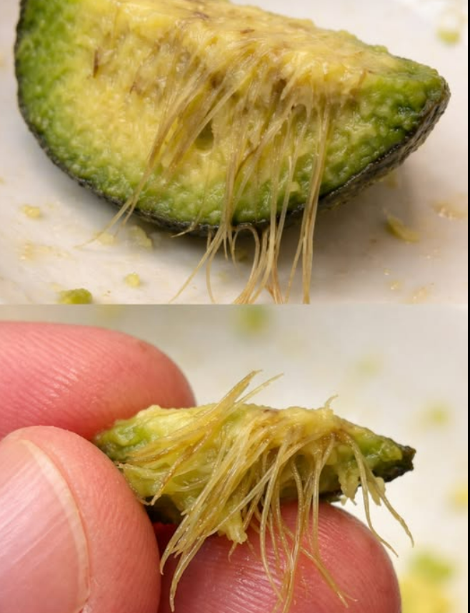 W miarę psucia się awokado włókna mogą oddzielać się od miąższu (jednak najpierw pojawiają się inne oznaki )