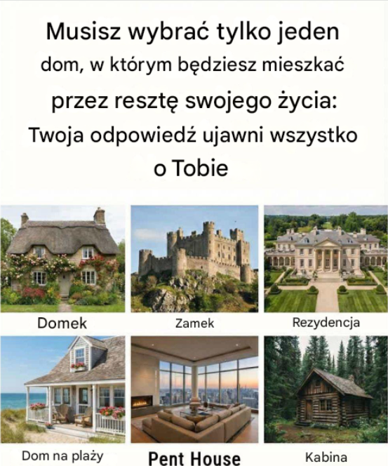 Na pierwszy rzut oka to pytanie wydaje się proste – wręcz żartobliwe. Domek, zamek, rezydencja, dom na plaży, penthouse czy chata. Tylko jeden wybór.