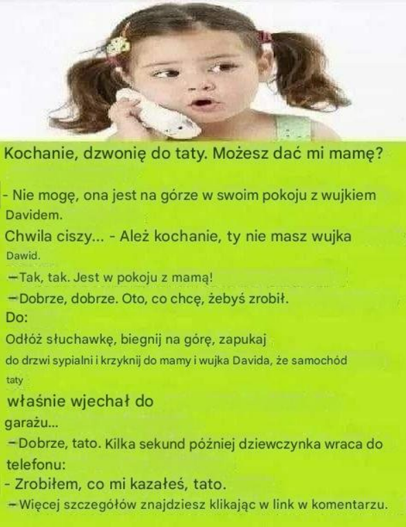 Po kilku sekundach ktoś odebrał. To była mała dziewczynka. Ojciec zapytał ją: „Cześć kochanie, dzwonię do taty… Możesz połączyć się z mamą?”