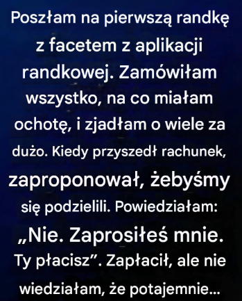 Zdenerwowana Maya poradziła sobie, jak to często robiła: złożyła zamówienie bez skrępowania. Jej uwagę przykuło kilka przystawek, a potem obfite danie główne, deser i napój gazowany, który miał uspokoić nerwy. Daniel uśmiechnął się i nawiązał rozmowę, choć jego wzrok na chwilę powędrował w stronę rosnącego nakrycia stołu.