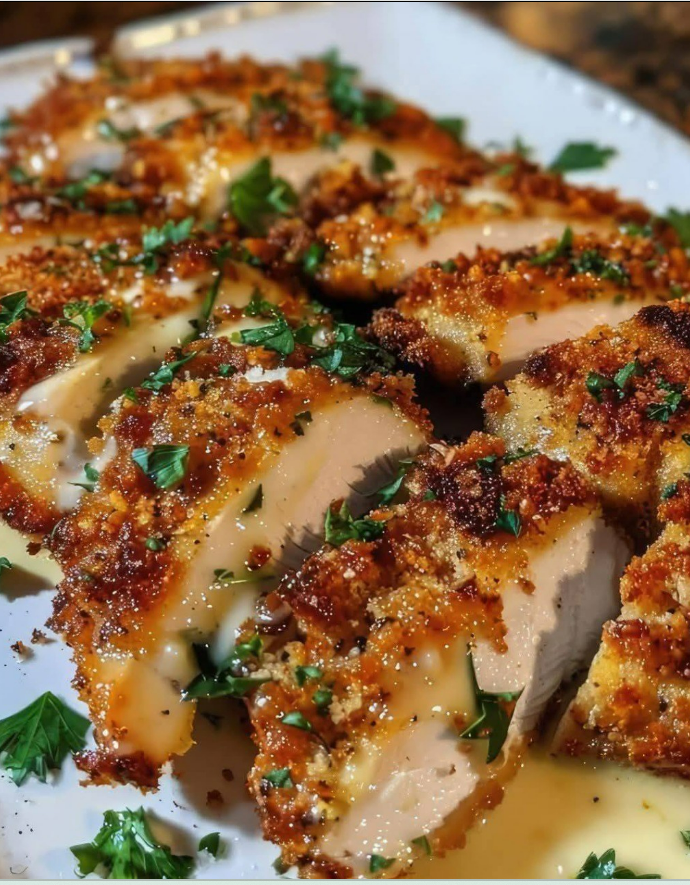 „Chrupiący, złocisty kurczak w aromatycznej panierce z czosnku i parmezanu. Idealny na łatwy, a zarazem efektowny obiad!”