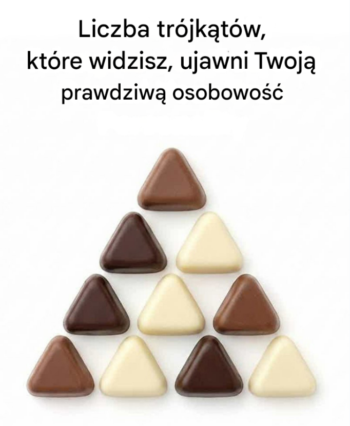 Widzenie większej liczby trójkątów zazwyczaj oznacza, że naturalnie analizujesz sytuację i szukasz wzorców, których inni nie dostrzegają. Jesteś ciekawy świata, spostrzegawczy i wytrwały. Złożone problemy Cię nie onieśmielają – one dodają Ci energii.