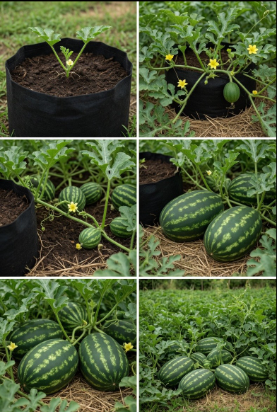 Arbuzy rozwijają głębokie i rozległe systemy korzeniowe, dlatego wybór pojemnika jest niezwykle ważny. Duże worki uprawowe, plastikowe donice lub beczki z odzysku to idealne rozwiązania. Pojemniki powinny mieć pojemność co najmniej 20-25 galonów (ok. 79-89 litrów) i głębokość 15-18 cali (ok. 38-46 cm) lub więcej.