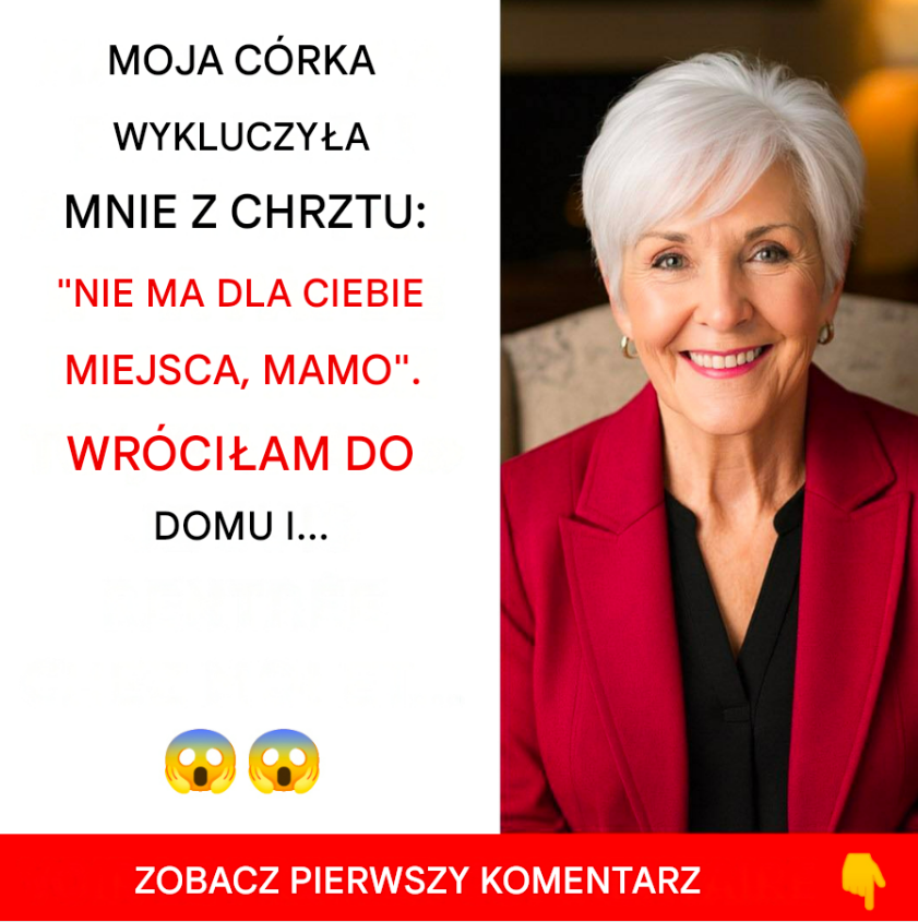Niektóre rodzinne rany zadają ciosy tam, gdzie najmniej się ich spodziewamy. Monique myślała, że właśnie przeżywa jeden z najszczęśliwszych dni w swoim życiu: chrzest swojego jedynego wnuka. Zorganizowała przyjęcie, opłaciła je i zaprosiła ponad sto osób, aby świętować narodziny dziecka w rodzinie. Jednak przy wejściu do kościoła jej własna córka zatrzymała ją mrożącym krew w żyłach stwierdzeniem: „Nie pasujesz do tego miejsca”. Ta chwila publicznego upokorzenia miała zapoczątkować nieoczekiwany zwrot w życiu 68-letniej matki.