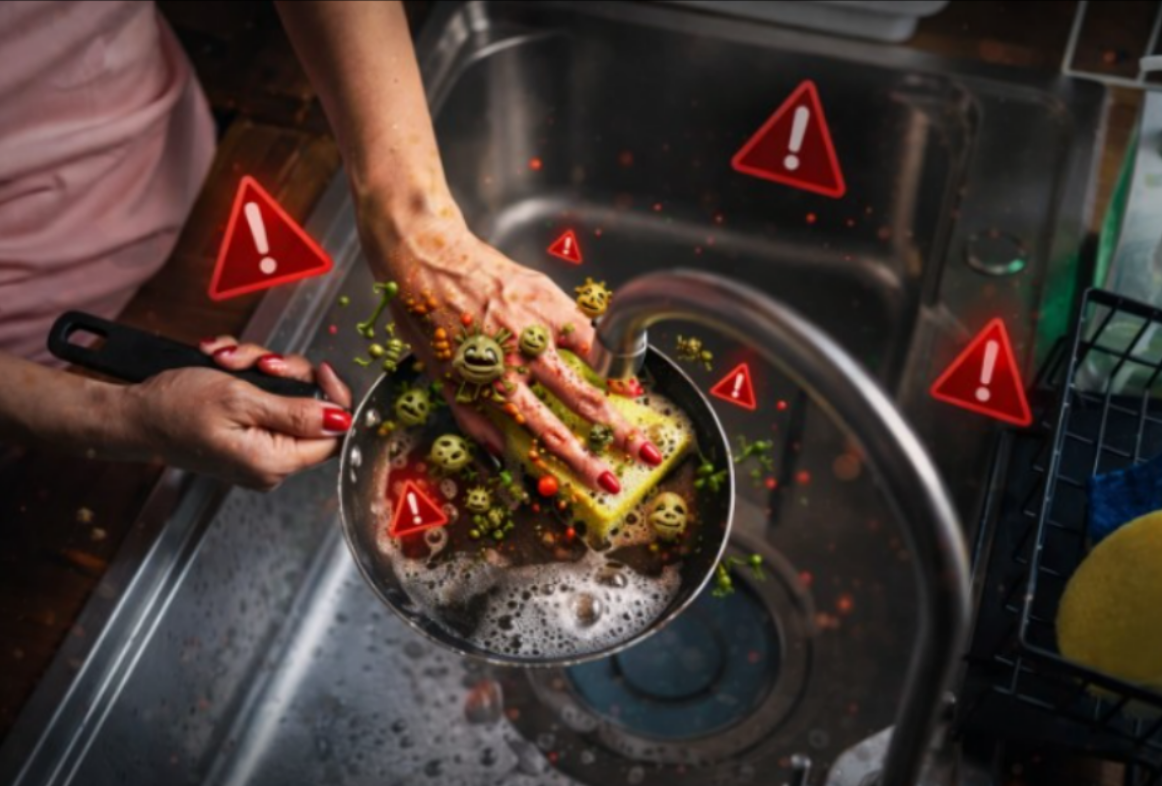 Używanie brudnej gąbki lub niedokładne spłukiwanie naczyń może rozprzestrzeniać bakterie zamiast je usuwać. Gąbki, zwłaszcza mokre przez długi czas, stają się siedliskiem zarazków.