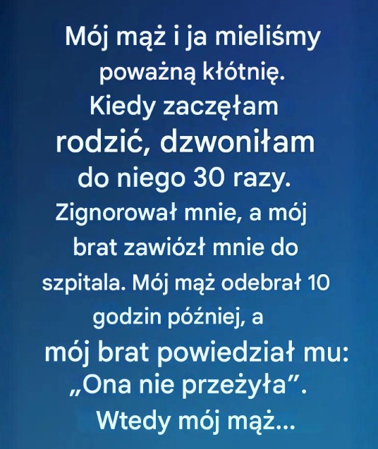 Kilka godzin później, gdy nadszedł pierwszy skurcz, zaparło mi dech w piersiach. Strach i ból mieszały się ze sobą i bez namysłu sięgnęłam po telefon. Zadzwoniłam – raz, drugi, trzydzieści razy. Każdy nieodebrany sygnał ściskał mnie coraz bardziej.