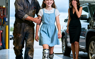 Zbankrutowany mechanik pomógł niepełnosprawnej dziewczynce — a jej miliarderka pozostała w żałobie… Daniel Brooks spędził całe życie na obrzeżach Oklahomy, pracując w małym, starym warsztacie samochodowym, który ledwo dawał mu zarobek wystarczający na przeżycie. Nawet z zużytymi narzędziami i popękaną betonową podłogą, wkładał całe serce w każdą naprawę. Ludzie ufali mu, ponieważ był uczciwy, sprawiedliwie wyceniał i nigdy nie odrzucał potrzebujących. Pewnego ciepłego czwartkowego poranka, wycierając smar z rąk, usłyszał niski szum luksusowego silnika za oknem — dźwięk, który zupełnie nie pasował do jego okolicy… Gdy wyszedł na zewnątrz, zobaczył powoli podjeżdżający, elegancki, czarny SUV. Jego wypolerowana powierzchnia odbijała światło słoneczne niczym szkło, przez co pojazd wyglądał niemal nierealnie na tle zakurzonego otoczenia. Przez chwilę Daniel zastanawiał się, czy kierowca nie skręcił w złą stronę. Potem tylne drzwi się otworzyły i z samochodu ostrożnie wysiadła młoda kobieta, podparta metalowymi klamrami przymocowanymi do nóg. Wyglądała na jakieś dziewiętnaście lat – krucha, lecz opanowana – z miękkimi, brązowymi włosami i stanowczym, lecz zmęczonym wyrazem twarzy. Obok niej stała jej matka, Victoria Hale, kobieta, której obecność i pewność siebie sprawiały, że natychmiast ją rozpoznawano. Victoria była znana w całej Oklahomie jako miliarderka, która zbudowała potężne imperium nieruchomości. Podeszła do Daniela z wahaniem przeplatanym z pośpiechem, rozglądając się po skromnym garażu, jakby nie była pewna, czy to jej miejsce – ale coś wyraźnie ją do tego popchnęło. Ich SUV zaczął się przegrzewać na autostradzie, a kierowca upierał się, że to najbliższe miejsce. Daniel obiecał im, że zajrzy, ale kiedy zauważył, że Sophie z trudem utrzymuje się na nogach, coś w nim drgnęło. Nie był lekarzem, ale miał instynkt mechanika. Problemy z ustawieniem kół zauważył od razu. Podczas sprawdzania pojazdu jego wzrok co chwila błądził w stronę Sophie. Siedziała cicho na ławce, jej aparat ortodontyczny był sztywny i ciężki, wyraźnie niewygodny. Po chwili podszedł i delikatnie zapytał: „Czy one powinny być aż tak ciasne?” Sophie zamrugała, zaskoczona. Ludzie rzadko ją o to pytali. Większość unikała jej, gapiła się na nią albo okazywała jej ogromne współczucie. Wyjaśniła spokojnie, że w wieku ośmiu lat została sparaliżowana na skutek poważnego wypadku i lekarze powiedzieli jej, że prawdopodobnie nigdy nie będzie chodzić bez pomocy. Victoria dodała cicho, a w jej głosie słychać było lata bólu, że próbowali wszystkiego – specjalistów, operacji, terapii – ale nic tak naprawdę nie pomogło. Aparaty ortodontyczne, które nosiła Sophie, były wykonane na zamówienie przez najlepszych specjalistów, a mimo to nadal powodowały dyskomfort. Daniel słuchał uważnie, a potem uklęknął obok niej — nie po to, by ją zbadać, lecz by zrozumieć, jak działają aparaty ortodontyczne. Zanim czegokolwiek dotknął, pytał o pozwolenie, z szacunkiem i spokojem. Gdy im się przyglądał, coś od razu rzuciło mu się w oczy. Układ był nierówny, ciężar nierówny, stawy zdecydowanie zbyt sztywne. To nie była tylko kwestia medyczna – to była kwestia mechaniczna. „To nie jest dobrze zbudowane” – powiedział cicho. Victoria wyprostowała się, lekko obronnie, wyjaśniając, że zaprojektowali je czołowi eksperci. Ale Daniel nie kwestionował ich kompetencji – po prostu wskazywał na to, co wyraźnie widział. Wyjaśnił, że metal, ciśnienie i ruch to rzeczy, które rozumie naturalnie i wierzy, że może udoskonalić projekt. Sophie spojrzała na niego z ostrożną nadzieją – czego nie czuła od lat. Wiktoria zawahała się. Zaufanie do córki nie było łatwe. Daniel zapewnił ją, że nie obiecuje cudów – tylko lepszą równowagę, wygodę i funkcjonalność. Nie chciał niczego pobierać. Nie miał tytułów – liczyły się tylko umiejętności i determinacja. Wiktoria wymieniła spojrzenia z Sophie, rozdarta między wątpliwościami a nadzieją. „Mamo… pozwól mu spróbować” – powiedziała cicho Sophie. Oczy Victorii wypełniły się emocją. Zgodziła się, ale upierała się, żeby wszystko obserwować. Daniel skinął głową. Ostrożnie wniósł aparaty ortodontyczne do warsztatu i zaczął analizować każdą część. W garażu ułożył je jak układankę, której nie mógł zignorować. Problem szybko stał się jasny – projekt koncentrował się bardziej na wyglądzie niż na funkcjonalności. Połączenia były sztywne, materiały zbyt ciężkie, a równowaga źle rozłożona. Każda wada wyjaśniała dyskomfort Sophie. Pracował do późna w nocy, szkicując, testując i poprawiając. Kiedy Victoria i Sophie wróciły następnego ranka, zastały go już pogrążonego w pracy. Pomimo wyczerpania, uśmiechnął się i wyjaśnił, jak planuje zrzucić wagę, poprawić ustawienie ciała i sprawić, by ruchy były płynniejsze. Sophie słuchała z rosnącym zainteresowaniem. Po raz pierwszy od lat poczuła się zrozumiana — nie jako stan chorobowy, ale jako coś, co można poprawić. Daniel kontynuował dopracowywanie każdego szczegółu, starannie kształtując lżejsze materiały, dostosowując elastyczność i testując każdy pasek. Garaż wypełnił się dźwiękiem narzędzi – i czymś jeszcze: celem. Victoria i Sophie wracały, uważnie obserwując. Victoria zachowywała ostrożność, ale Sophie stawała się coraz bardziej ciekawa i zadawała pytania, które wywoływały uśmiech na twarzy Daniela. Wyjaśniał wszystko w prosty sposób, dając jej poczucie przynależności. Przyglądała się, jak ostrożnie pracuje, traktując jej aparat ortodontyczny jak coś, co ma znaczenie. I powoli zaczęła dzielić się swoją historią – wypadkiem, latami spędzon