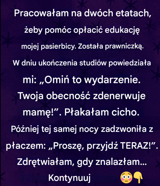 Moja pasierbica była błyskotliwa i ambitna, jej marzenia wykraczały daleko poza nasze skromne możliwości. Chciała iść na studia prawnicze. Droga była stroma, droga i niepewna. Mimo to podjąłem cichą decyzję: jeśli ona ma wspiąć się na tę górę, to ja wejdę razem z nią.