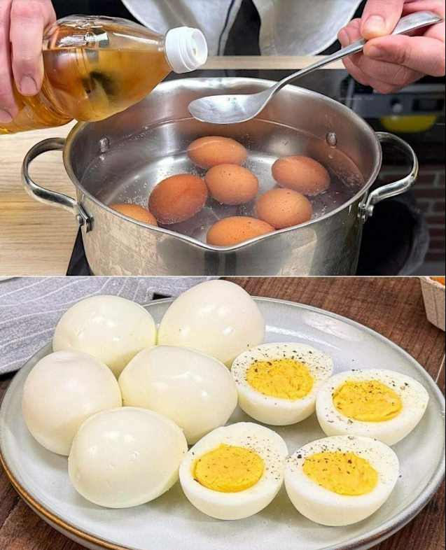 Dodaj ocet do wody: Dodanie zaledwie 1 łyżki octu do wrzącej wody pomaga białkom jaj łatwiej stężeć, jeśli skorupka pęknie. Ocet również lekko zmiękcza skorupkę, ułatwiając jej obieranie. Nie martw się — nie wpłynie to w ogóle na smak jajek! Kwas w occie reaguje z wapniem w skorupce jajka, zapobiegając pęknięciom spowodowanym przez wylewanie się białka do wody i zapewniając gładkie wykończenie. Unikaj szoku termicznego z lodówki do garnka: Wyjmowanie jajek bezpośrednio z lodówki do gorącej wody może prowadzić do pęknięć spowodowanych szokiem termicznym. Pozostaw jajka na 10–15 minut przed gotowaniem ,