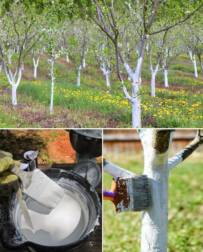 Pod koniec zimy niektóre owady próbują wspiąć się po pniu, aby osiedlić się na gałęziach. Nałożenie warstwy wapna na korę tworzy barierę ochronną, która ogranicza ich rozprzestrzenianie się.
