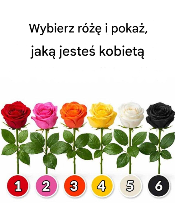 Czasami wybory, których dokonujemy – nawet te proste – mogą odzwierciedlać głębsze aspekty naszej osobowości. Kolory, w szczególności, często łączą się z naszymi emocjami, wartościami i sposobem, w jaki postrzegamy świat. Poświęć chwilę, spójrz na róże na obrazku i wybierz tę, która najbardziej Cię przyciąga. Twój wybór może ujawnić coś interesującego na temat tego, jaką jesteś kobietą.
