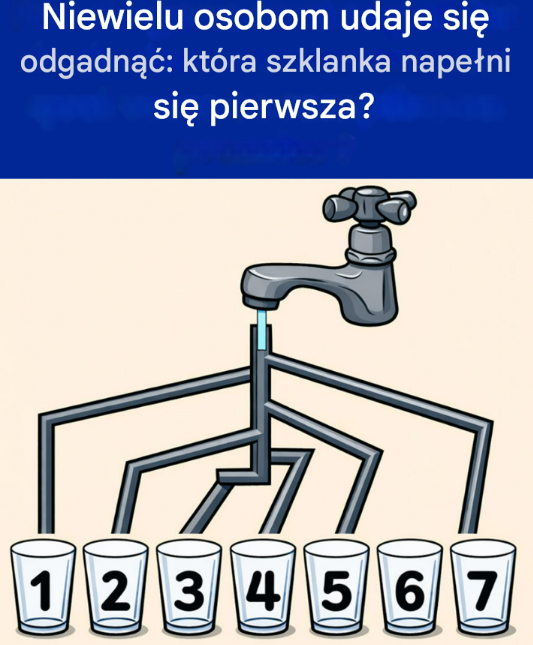 Na pierwszy rzut oka to wyzwanie wydaje się dziecinnie proste. Siedem szklanek, kilka rurek, woda, która musi płynąć… i proste pytanie: która szklanka zostanie napełniona pierwsza? Jednak, jak to często bywa w przypadku zagadek wizualnych, odpowiedź nie jest taka, jak myślisz. A jeśli odpowiedziałeś zbyt szybko, prawdopodobnie wpadłeś w pułapkę.